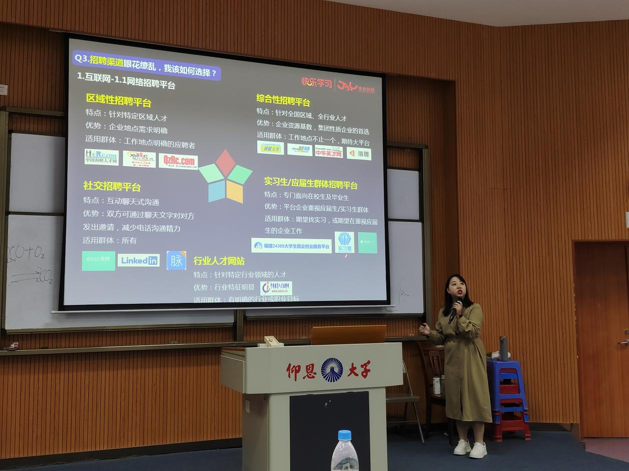 为了更好地拓宽毕业生就业渠道,11月2日,必威BETWAY西汉姆联在和昌教学楼博雅讲堂举办2023届毕业生招聘宣讲会。快乐学习人力资源部高级经理郭颖和资深教师刘懿萱出席。