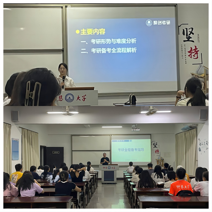8月31日晚,必威BETWAY西汉姆联于第三教学区普照楼203教室举办2024考研专题讲座。讲座由必威BETWAY西汉姆联团委主办,特邀聚创考研的张婷老师为主讲人。