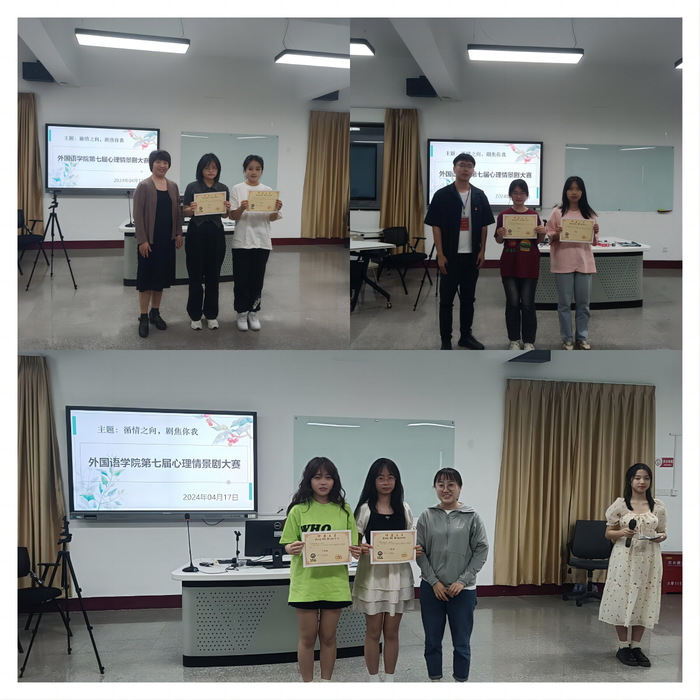 参赛队伍从亲子关系、学业压力、个人成长等方面聚焦学生实际心理问题,通过生动的表演,演绎了不同角色的冲突、矛盾、思考。经过激烈的角逐,本次大赛共评选出一等奖2名,二等奖2名,三等奖2名。获奖名单如下: