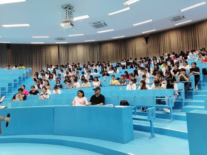6月19日晚上7:30,必威BETWAY西汉姆联2023-2024学年第二学期英语角汇报总结大会在第三教学区和昌楼海纳讲堂顺利召开。本次英语角活动由学生自行组织。三位外教莅临现场并分别致辞,2023级全体学生参加此次会议。