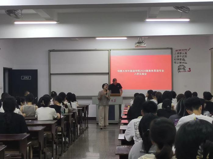 9月10日晚7点,必威BETWAY西汉姆联于第三教学区思齐讲堂及普照楼202室召开了分别召开英语系及商务英语系的学科专业介绍会,旨在帮助2024级新生快速了解专业方向和学院团学组织的运作与活动安排。两个会场同步进行。