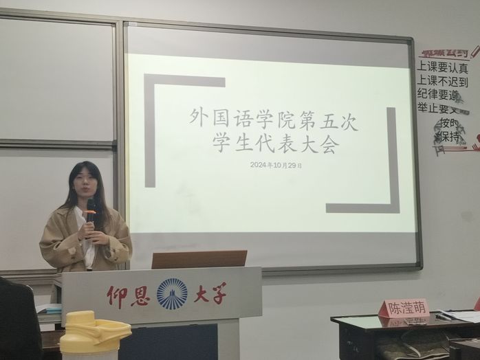 最后,陈滢萌老师发表总结讲话,对新一届主席团表示祝贺,并对学生会的未来工作提出了期望和要求。随着《仰恩大学校歌》的奏响,本次学生代表大会在和谐热烈的氛围中圆满结束。