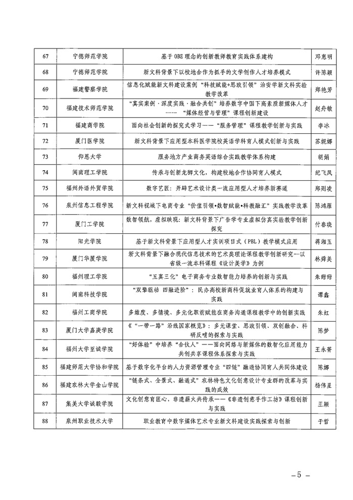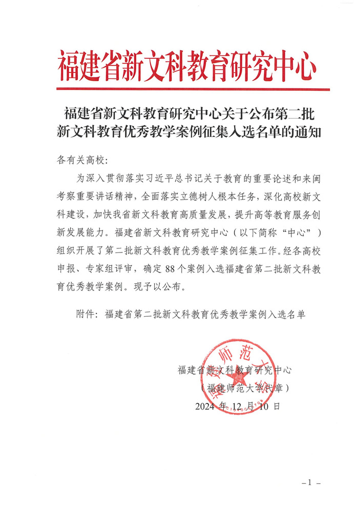 近日,福建省新文科教育研究中心公布了第二批新文科教育优秀教学案例的征集入选名单,我校必威BETWAY西汉姆联胡娟老师的“服务地方产业商务英语综合实践教学体系构建”教学案例脱颖而出,成为我校唯一一个入选此批名单的优秀教学案例。