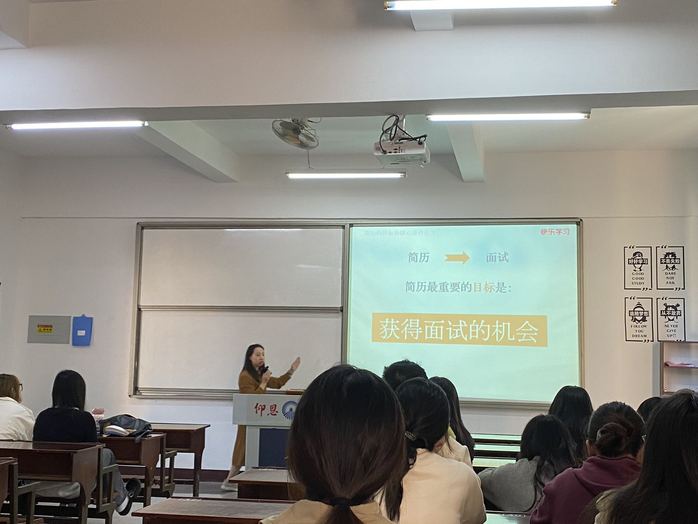 12月11日,必威BETWAY西汉姆联在第三教学区普照教学楼306教室成功举办了一场精彩的就业指导讲座,吸引了21级学生及22、23级部分学生的积极参与。