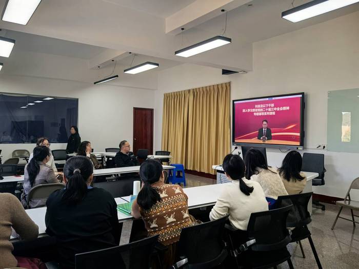 教工支部书记蔡维同志表达了自己深刻的感受。他认为,学习全会精神不仅让我们对国家的发展方向有了更清晰的认识,而且也明确了我们作为教育工作者的责任和使命。他表示,要将全会精神转化为实际行动,不断提高自身的业务水平和教育质量,为实现中华民族的伟大复兴贡献自己的力量。随后,支部全体党员展开了热烈的学习讨论。大家围绕全会精神,结合自身工作实际,开展课程思政融入教学及教学研究融入国家战略的讨论和发言。