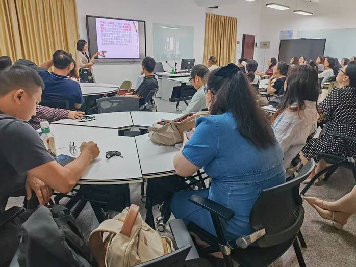 薛教授从如何选择科研课题入手,详细讲解了课题的创新性、可行性以及实际应用价值,突出了科研的“持续性”(continuity)。薛教授以留英时完成的博士论文为例,诠释了完成博士课题的全过程:选题定题、文献检索运用、研究方法选用及其合理性、定性定量数据结合运用的优势、精准立论的重要性、实证数据的分析及其文中的自然融入和应用、结论的归纳和得出。通过进一步展开对自己随后完成的一系列国际教育课题的讲解,薛教授强调了科研“连续性”的重要意义。讲座中,薛教授尤其强调注重发现和推断出“反直觉”(counter-intuitive)的研究结论,展示研究的独特性和新颖性,为领域做出贡献。讲座中,薛教授重审了英语教师不仅需要具备语言综合素养,更应该具备教研素养。她以“教学相长”“科研促教”鼓励教师们要勇于尝试、敢于创新,积极参与科研项目申报,不断提升自己的教科研能力和水平。