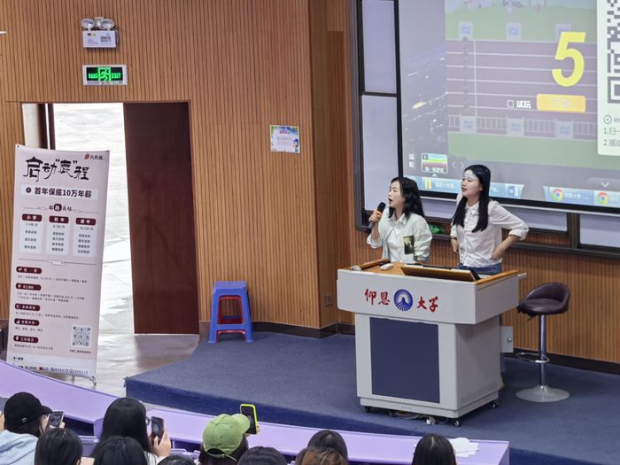 宣讲会上,九色鹿公司代表详细介绍了企业发展历程、业务范围及教育理念,作为知名教育机构,其完善的职业发展体系与优厚的福利待遇吸引了同学们的广泛关注。