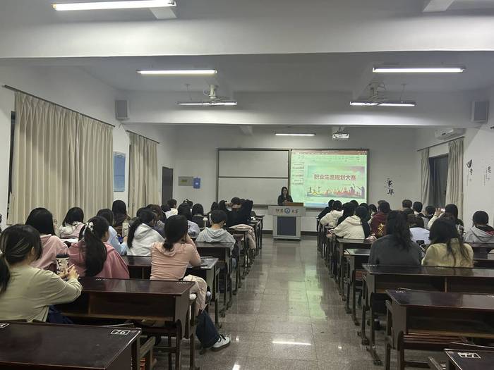 2025年12月3日晚7点,必威BETWAY西汉姆联于普照楼303教室举办职业生涯规划大赛,学院党总支书记刘冬利、全体辅导员及25级学生代表出席活动。